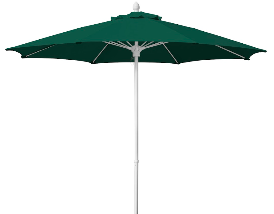 FiberBuilt Patio Umbrella with Crank Lift, 9 Foot Forest Green Canopy and White Pole - 9HCRW-Forest Green This 9 ft octagonal Patio umbrella with a market...