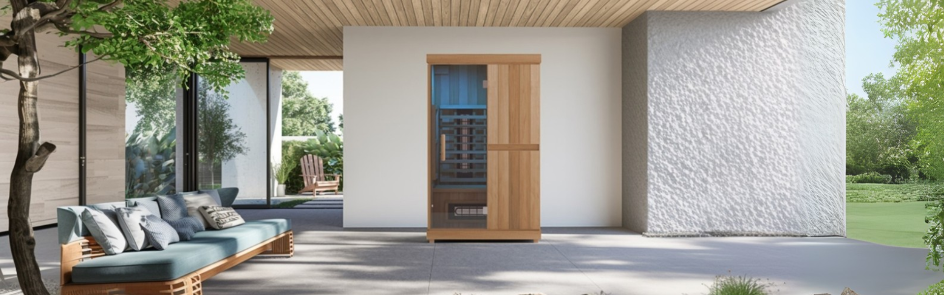 Finnmark FD-1 Full Spectrum Infrared Sauna – 1-Person Home Sauna 38”W x 38”D x 78”H Features Built-in LCD touchscreen controller with Bluetooth audio. Audio with 6"...