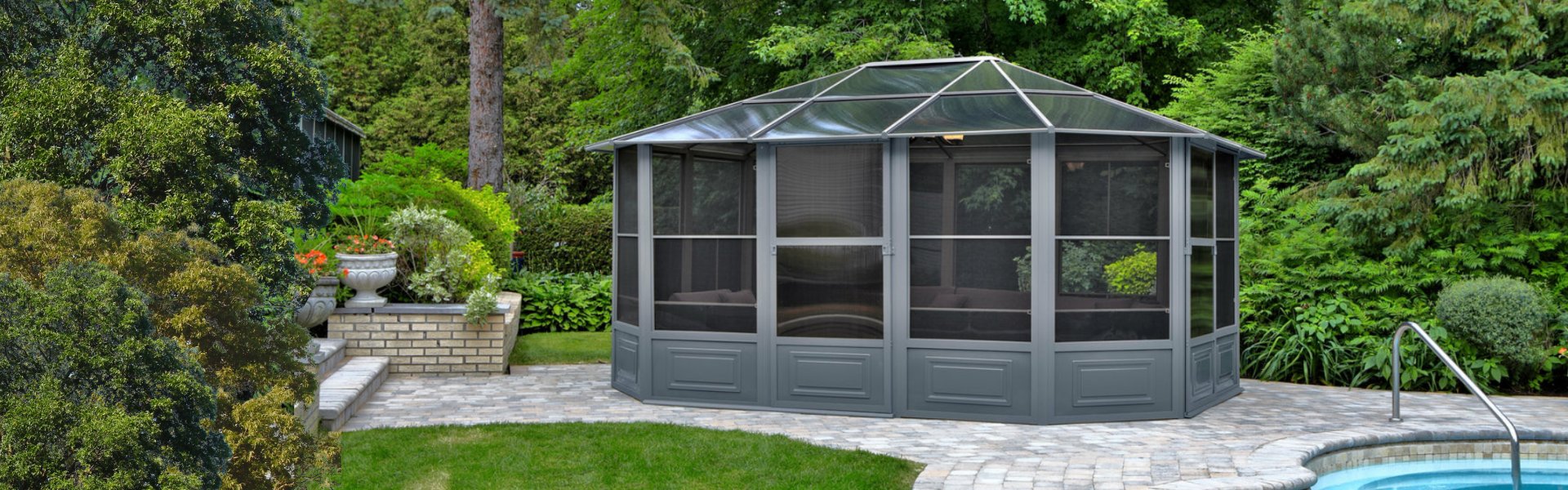 Gazebo penguin florence solarium with metal roof 12'x12' slate - 41212mr-32