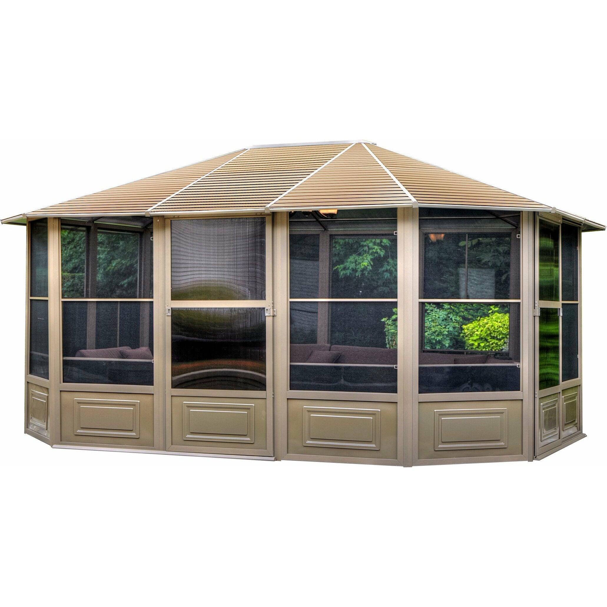 Gazebo penguin florence solarium with metal roof 12'x12' sand - 41212mr-12