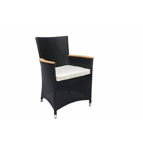 Royal Teak Collection Helena Chair Black / White Cushion - HEFWBL All-Weather Wicker Chair with Teak Armrests, Wrapped over a Powder Coated Aluminum Frame, Gray Wicker...