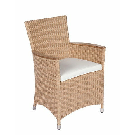 Royal Teak Collection Helena Chair Honey / White Cushion - HEFWHO All-Weather Wicker Chair with Teak Armrests, Wrapped over a Powder Coated Aluminum Frame, Gray Wicker...