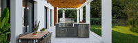 Alfresco home oden gray rectangular aluminum & polywood dining table with umbrella hole - 300-2009