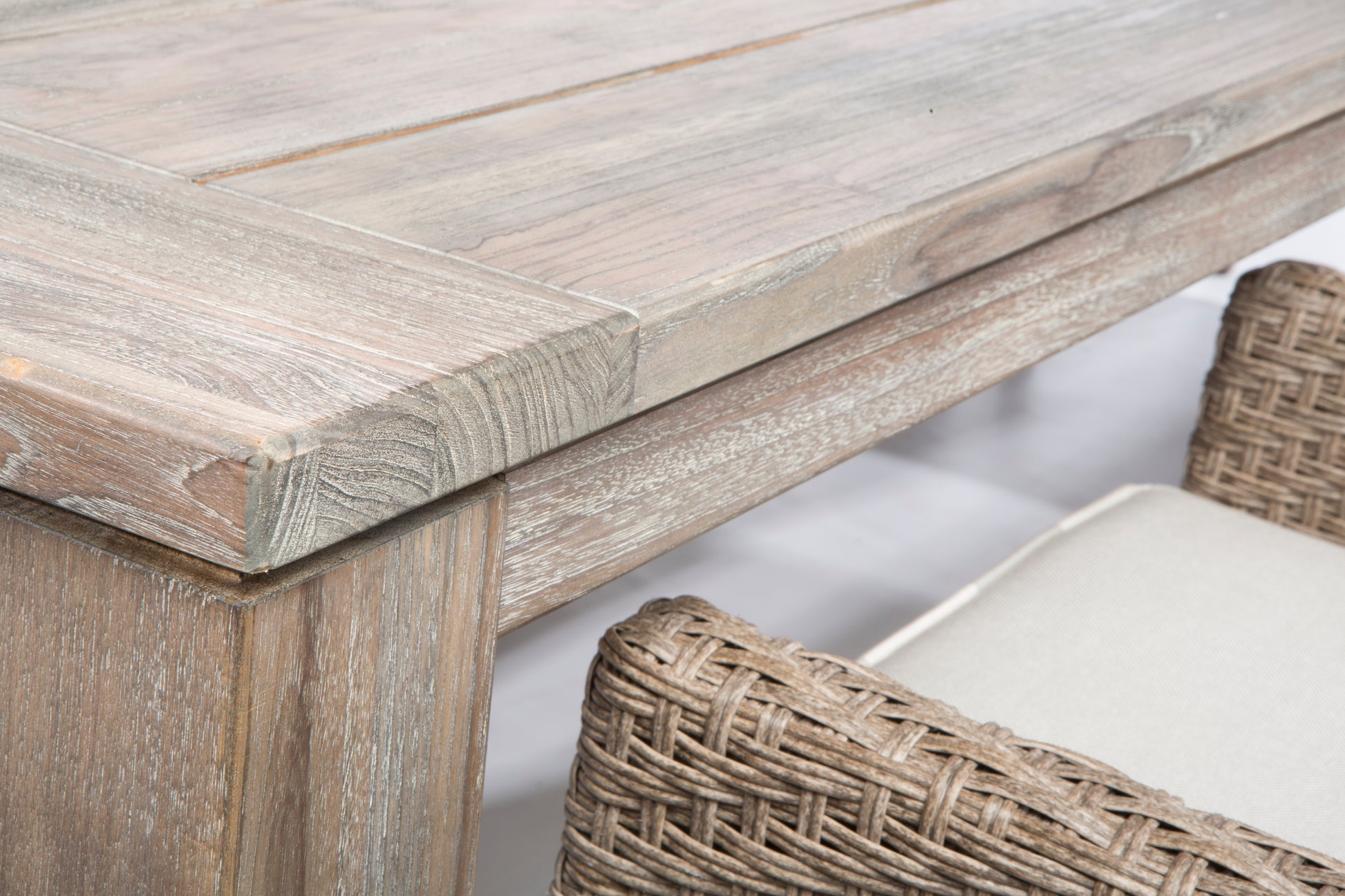 - Tables and Seating components are made from FSC Eucalyptus Wood sealed with a hand applied vintage outdoor rated stain creating the naturally weathered look.