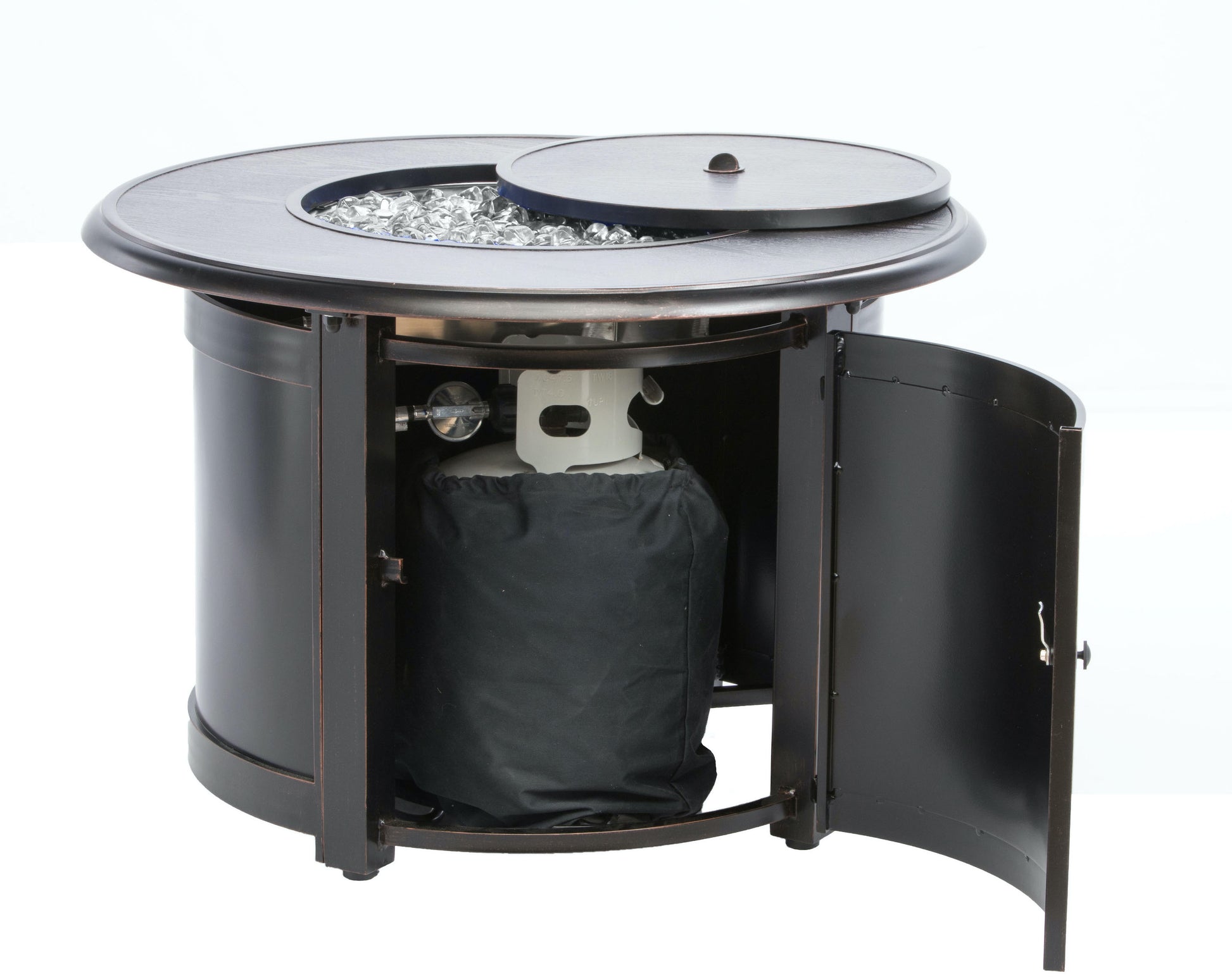 - Comes standard with an aluminum center disc covering the burner area making this a multi-function firepit table.