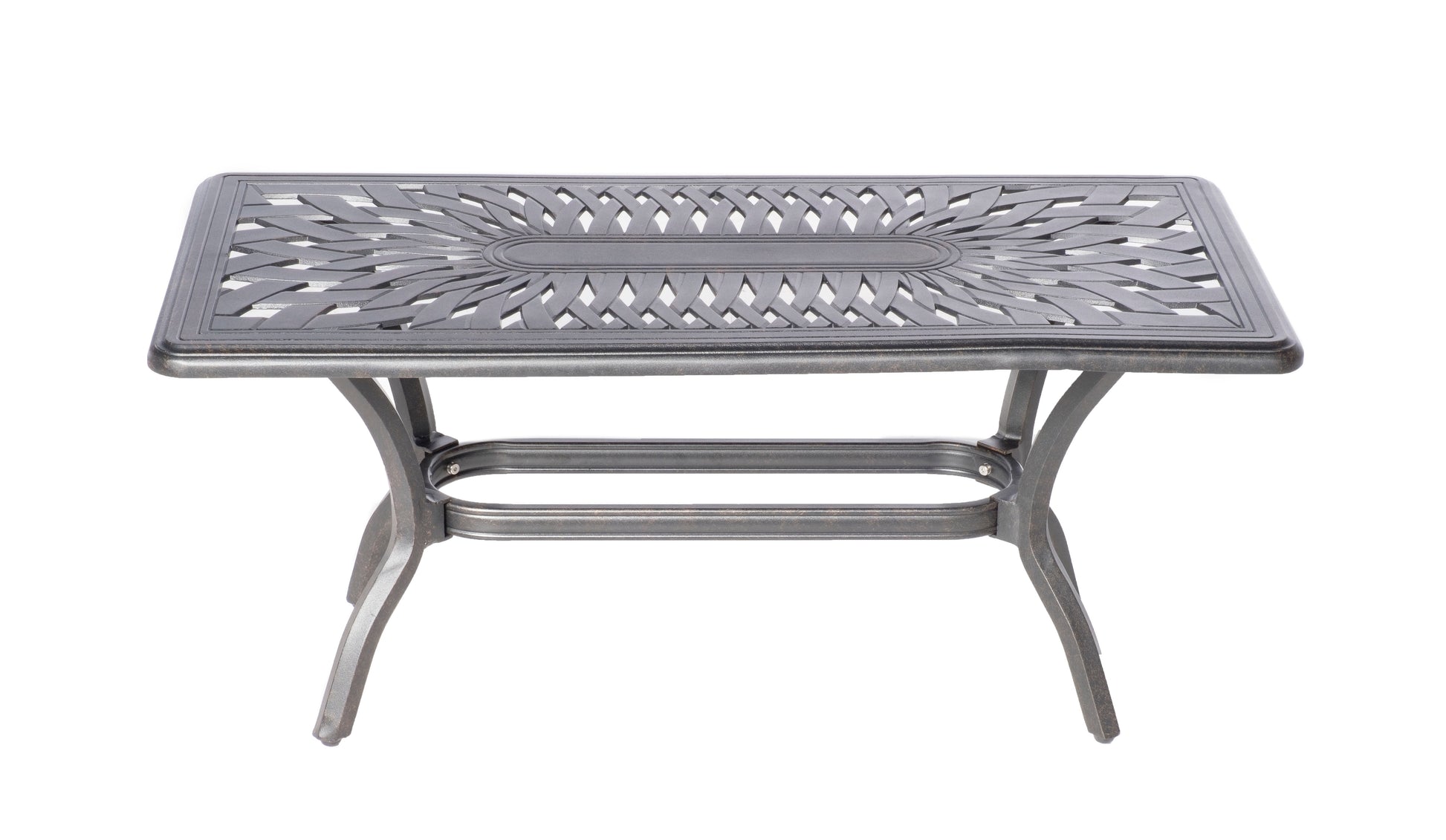 • The Alfresco Home Newbury collection is designed to compliment any setting. Included in this cast aluminum set is 2 deep seating arm chairs, 1 loveseat and coffee table. The cushions are wrapped in a UV resistant Olefin fabric with Quick Drying fill. Cushions can be secured to the frame with fabric ties for ease of ownership. The adjustable height leg glides take away any uneven concerns. Along with the maintenance free aluminum frame we are sure you will enjoy many fruitful conversations in your Newbury set by Alfresco Home.