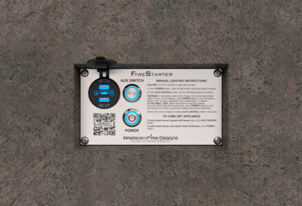 American Fyre Designs brings even more convenience to the outdoor room. The easy to use Manual Flame Sensing Control system uses a simple push button electronic igniter. With an easy to change double A battery as the power source, this ignition system utilizes a thermocouple for safety.