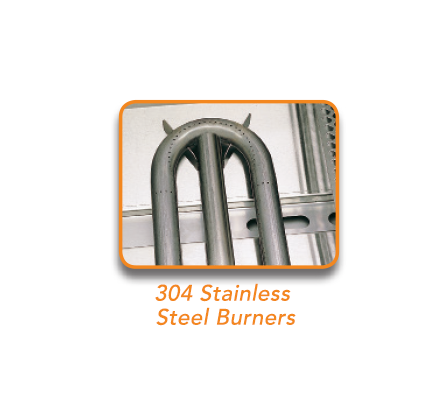 - NEW All 304 stainless steel construction including burners, vaporizer panels, cooking grids, and warming rack.