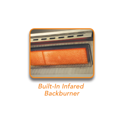 - Backburner with high performance rotisserie kit (not available on -00SP models).
