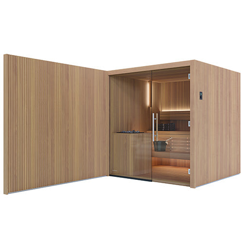 The Auroom Libera Glass indoor sauna redefines modern wellness with elegance and freedom. Its striking full-glass front wall and refined vertical wood paneling create a spacious, light-filled sanctuary for your home. Designed to blend contemporary design with authentic craftsmanship, this indoor sauna kit brings the ultimate relaxation and aesthetic harmony to any interior space.
