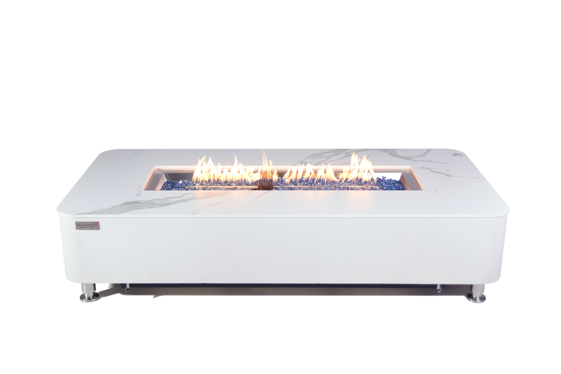ELEMENTI - Athens 62 Marble Porcelain Top Fire Table - Bianco White - OFP102BW