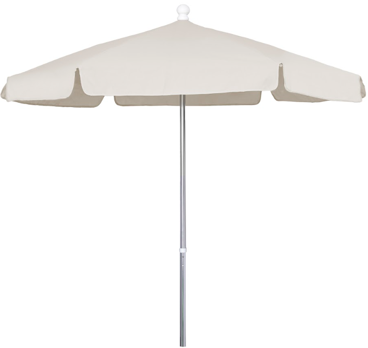 Primarily for light duty locations, this 7.5 ft hexagonal valance style umbrella features a vinyl coated weave canopy (available in 10 colors) and a two piece, 1.5″ diameter pole with a .065″ aluminum wall thickness and is available in three powder coat finish pole colors. Can be used for both in-table and freestanding. Not designed for high wind locations. These budget-friendly valance style umbrellas provide years of shaded comfort to backyards and pool decks.