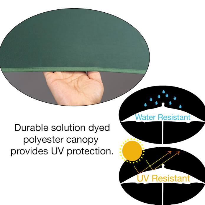 • Umbrella has a 2- piece 1.5 inch diameter powder-coated aluminum pole with push-button tilt to position the umbrella according to the sun's direction