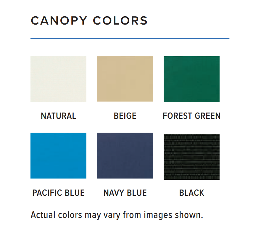 - Canopy is octagonal in shape with a 9 foot diameter and 96 inch height with a push up and pin style lift