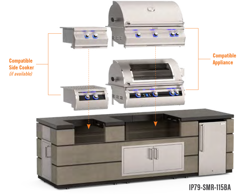 Constructed from durable Glass Fiber Reinforced Concrete(GFRC) and easily assembled on-site, our island bundles are specific packages for Fire Magic equipment and make a stunning outdoor kitchen. Just choose the grill and side cooker and order this convenient package for your outdoor kitchen.