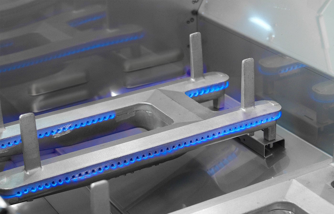 - Cast stainless steel “E” burners