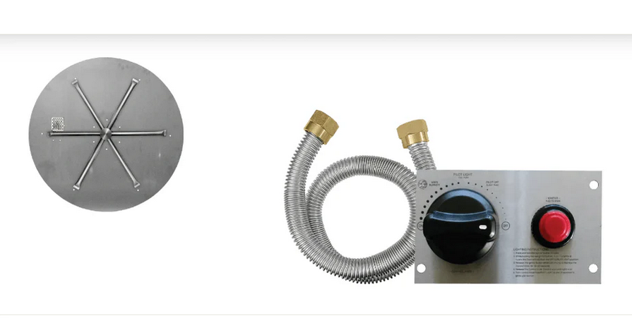 Firegear 34" Round Disc Thermocouple Piloted Safety Ignition Fire Pit provides a high quality burner system to complete your gas fire pit project. This system features a heavy-duty stainless steel burner for commercial-quality durability and a premium stainless steel pan. The impressive burner design offers a full and natural-looking flame appearance. Thermocouple Piloted Ignition System with Safety Valve turns gas off when loss of flame. Easy ignition with Battery Spark Igniter included.
