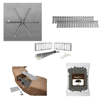 Easy-to-install and complete fire pit bundle, this Firegear 25" Stainless Steel Square Flat Pan Paver Ready Gas Fire Pit Kit is the best option for any homeowner or contractor if you want to install a fire pit into your paver block patio. The flexible Flex Frame supports a sandwich between the brick pavers and perfect for corners and even 90° angles. The included venting ensures a cool and safe cavity underneath the burner disc. While the adjustable control comes with a very accessible panel and replaces a paver block.