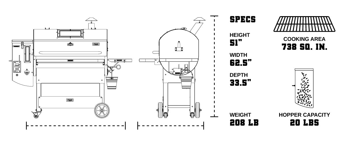 This is what PEAK backyard BBQ performance looks like! With the all-new PEAK PRIME® 2.O achieve the highest quality wood-fired flavor by harnessing 12-V Direct Power with unrivaled heat consistency and temperature control. The new rounded/peaked hybrid chamber provides for optimal heat distribution and smoke circulation creating a superior 360° of wood-fired greatness. The PRIME 2.0 design changes the game of backyard versatility and customization. Enabled with GMG RACKT™ technology, this grill can be easily equipped with elevated racks, smoke shelves, cooking pans, griddles, you name it! When you’re ready to turn the heat up, the GMG SideBURN™ attachment can easily transform your side shelf into a high heat side burner.