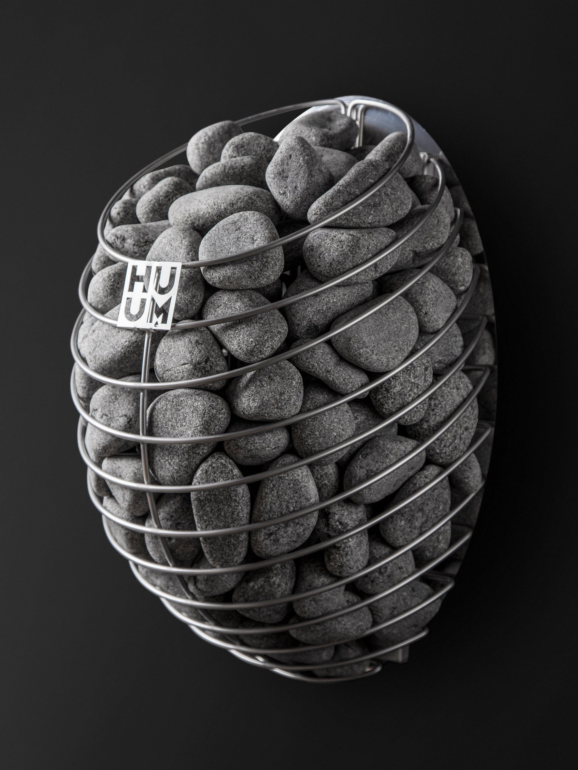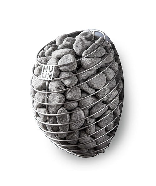 The HUUM DROP 7.5 is a wall-mounted 7.5 kW electric sauna heater with a drop-shaped stainless steel design that saves space while providing a high stone capacity. Its open stone basket delivers soft, long-lasting steam. Requires a compatible external controller and sauna stones (sold separately).