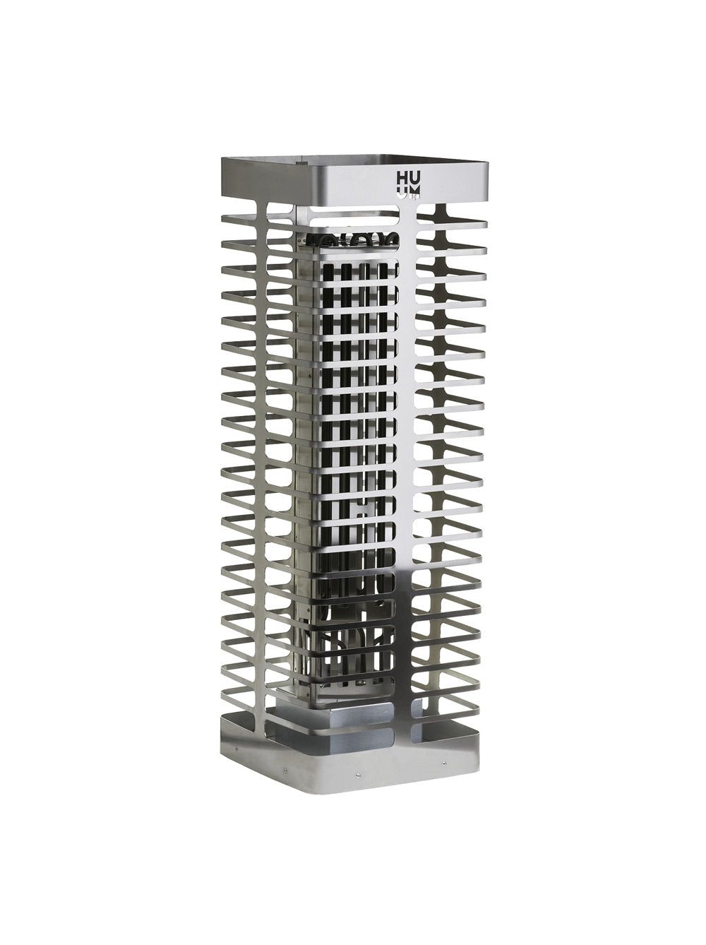 The HUUM STEEL 9 is a vertical, floor-mounted 9 kW electric sauna heater crafted from stainless steel. Its slim, space-saving design allows for a large stone capacity, delivering soft, long-lasting steam and efficient heating. Ideal for medium to large residential sauna rooms. Requires a compatible external controller for operation.