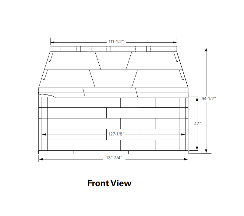 - Firebox Opening (Front × Height): 119" W × 44" H