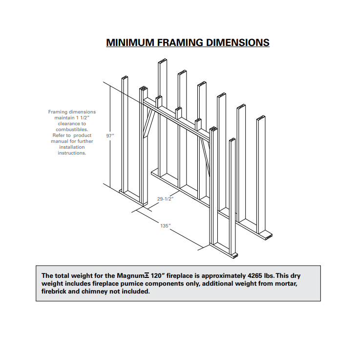 The Magnum+ 120" fireplace requires a Class-A venting system for safe, efficient operation: