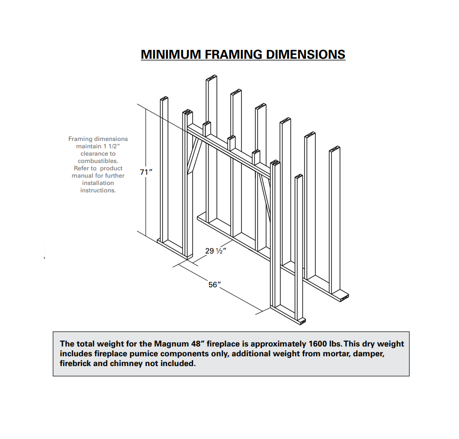 - Firebox Opening (Front × Height): 48" W × 33" H