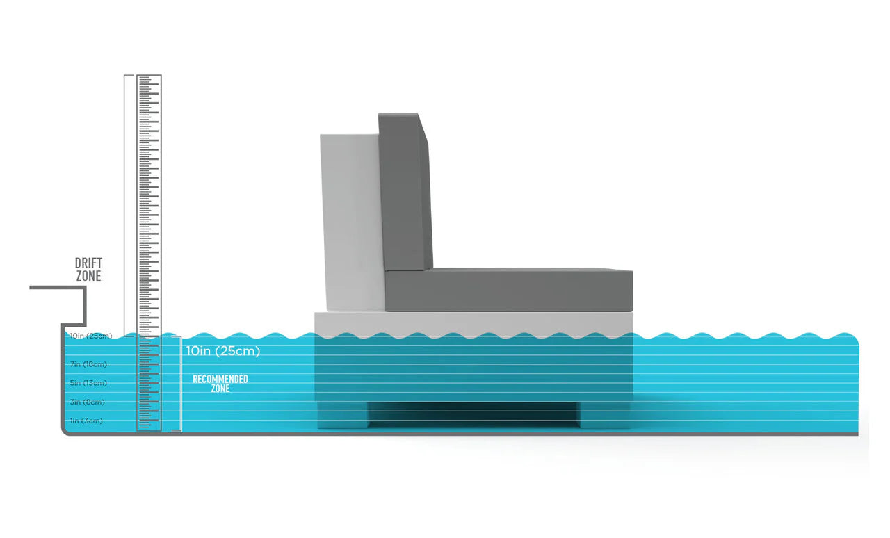 - Two-piece cushion made of marine-grade outdoor fabric and EZ-Dri foam core