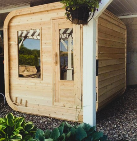This Canadian Timber Collection Luna Sauna by Dundalk LeisureCraft is handcrafted from Eastern White Cedar that is lighter in color and has tight knots in the wood. This Luna Sauna kit will seat 2-4 people, comes with solid cedar floor joists, floor and walls, white cedar bevel siding for the sides and is packaged in a ready to assemble kit.