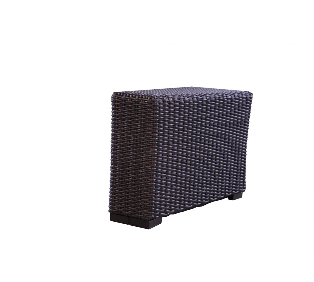 Elevate your outdoor space with the Mesa Wedge Table in a warm pecan-colored vinyl. Add a touch of natural beauty to your outdoor decor with Mesa's stylish lines and modern design. Lloyd Flanders vinyl furniture is 100% virgin vinyl with UV inhibitors and has no added fillers to ensure that the vinyl will remain soft and pliable through many years of use and will hold its shape. Seat cushions are made with a core of foam for structure and longevity, wrapped with polyester layered fill for plush comfort and completely encased in a moisture resistant fabric for low maintenance in outdoor settings. Lloyd Flanders woven vinyl furniture is manufactured overseas with all cushioning made in the USA. Lloyd Flanders woven vinyl furniture is manufactured with all aluminum frames which will not expand and contract with changes in weather for years of low maintenance usage in outdoor settings.
