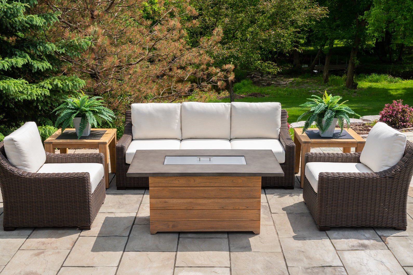 Lloyd Flanders Teak 52" Rect. Fire Table with Faux Concrete Top - 286098