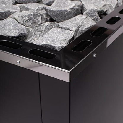 The sturdy outer casing of the sauna stove is painted in black for a bold appearance. This stove is robust and designed for longevity, ensuring that it will endure for many years while creating an authentic ambiance in the sauna.