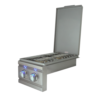 Whether you need to cook your vegetables or warm up sauces, our double side burner features two heavy duty 12,000 BTU burners for enhanced performance and superior heat retention. Built from stainless steel and designed to slide into your outdoor kitchen this unit will provide you with years of outdoor cooking enjoyment. Includes ignition with made easy push and turn knobs that offer a reliable flame with every start. The stainless steel lid protects the burner when not in use.