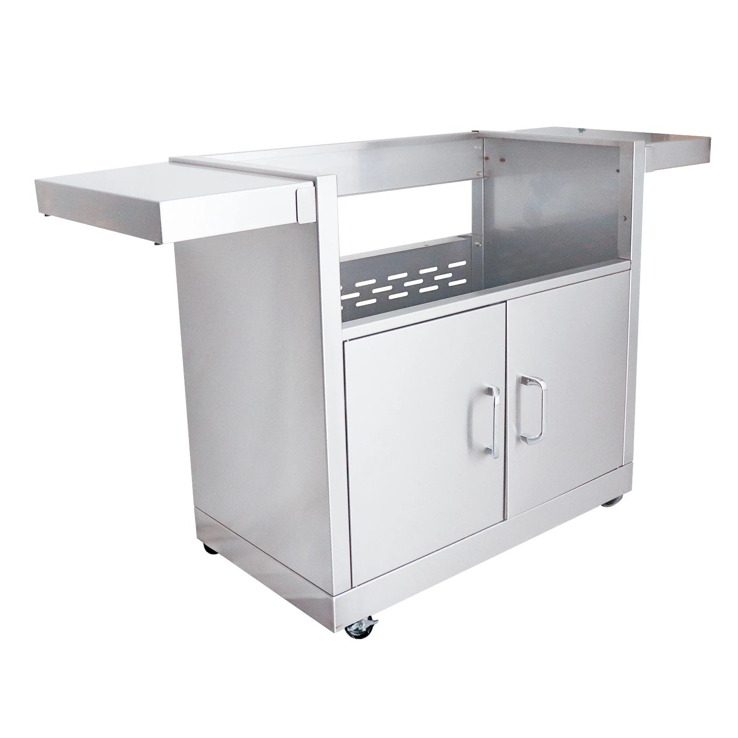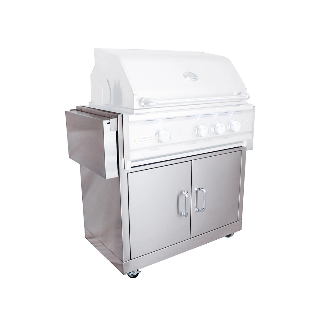 The Cutlass Pro Series Grill Cart features a stainless steel body, two fold-down side shelves, double access doors with matching RCS grill handle and heavy-duty swivel casters. All of these features are packed into a beautiful cart perfect for your backyard.