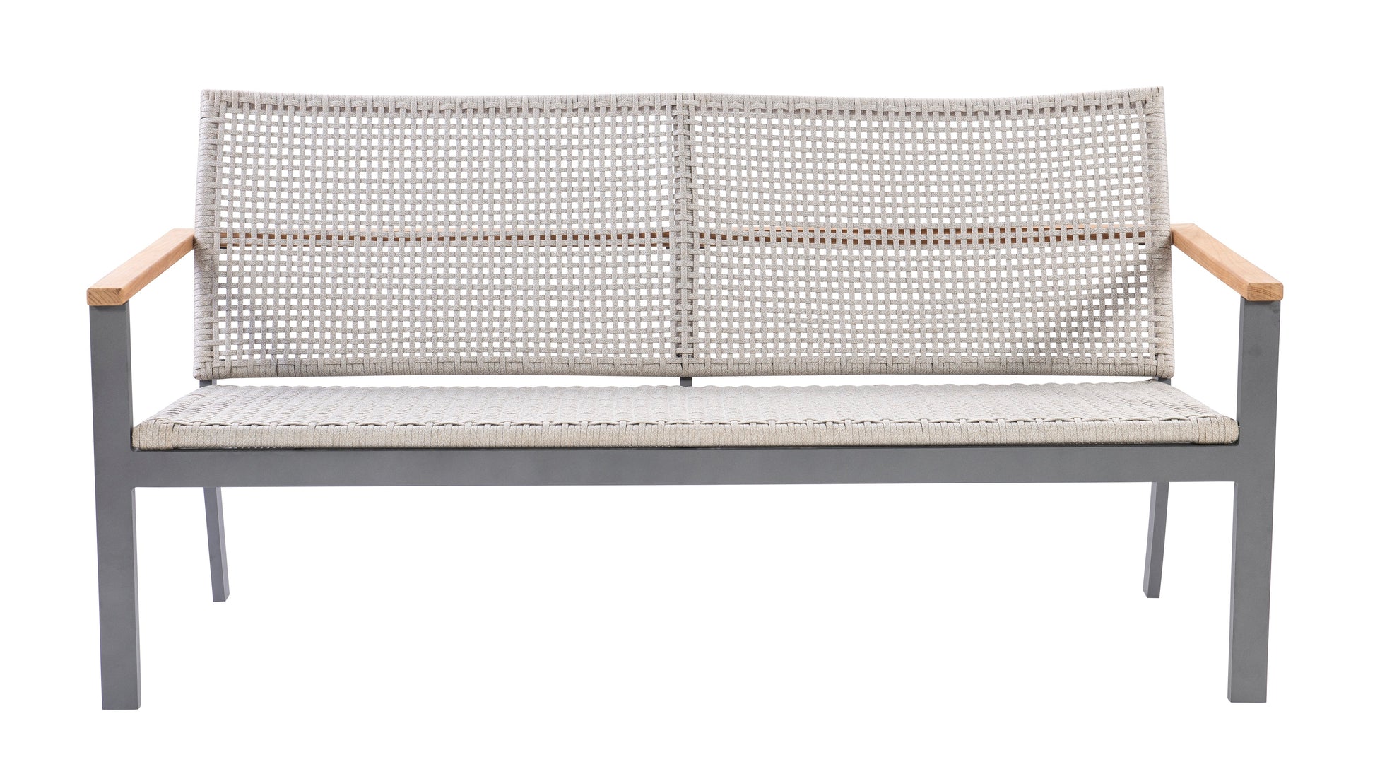 The Royal Teak Collection's Naples Sofa is built with a durable aluminum frame and a charming basketweave design, ensuring long-lasting comfort and UV ray resistance.