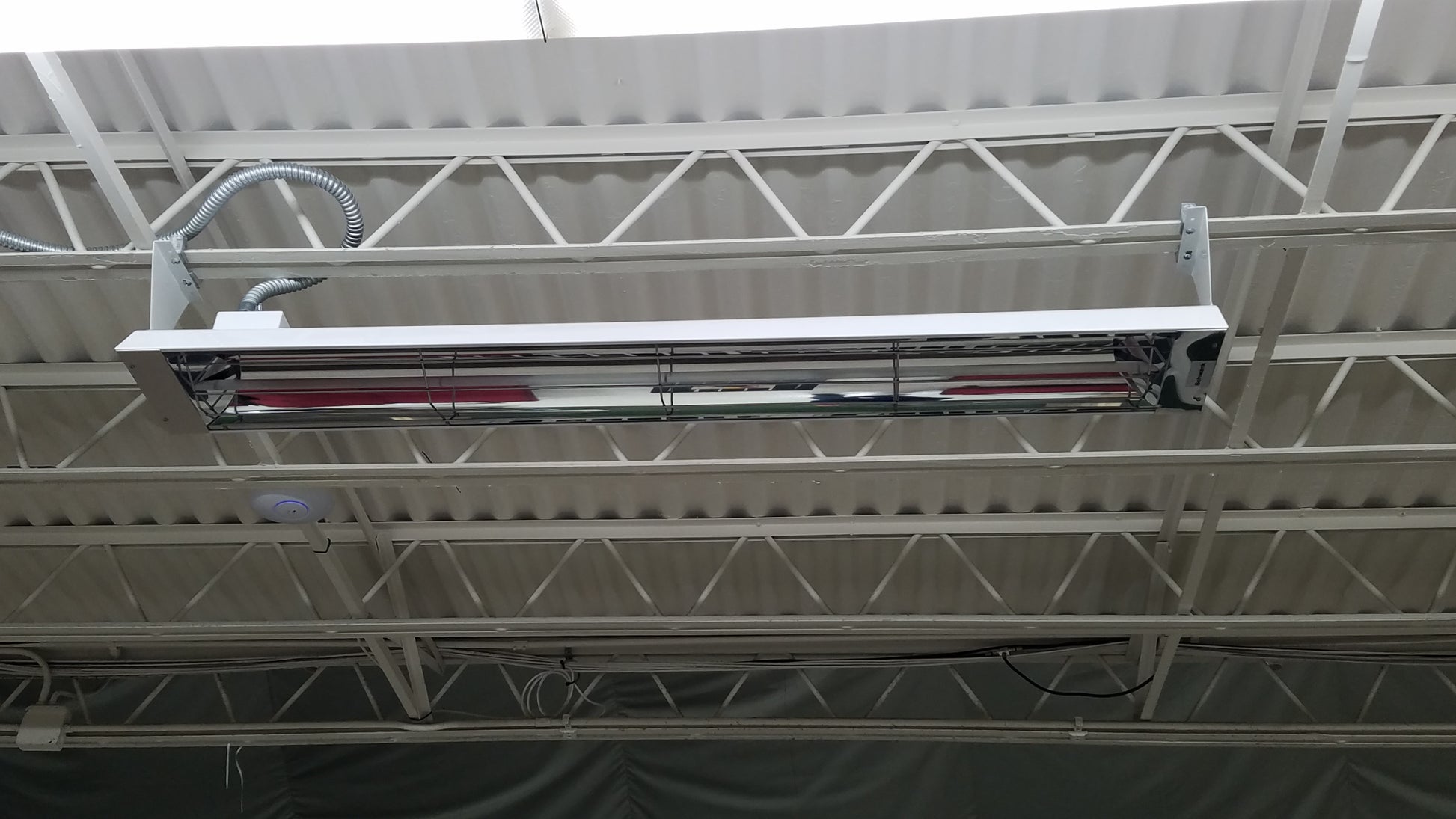 As opposed to free-standing patio heaters, this heater's overhead mounted design frees up space in aisles to allow more room for seating and foot traffic.
