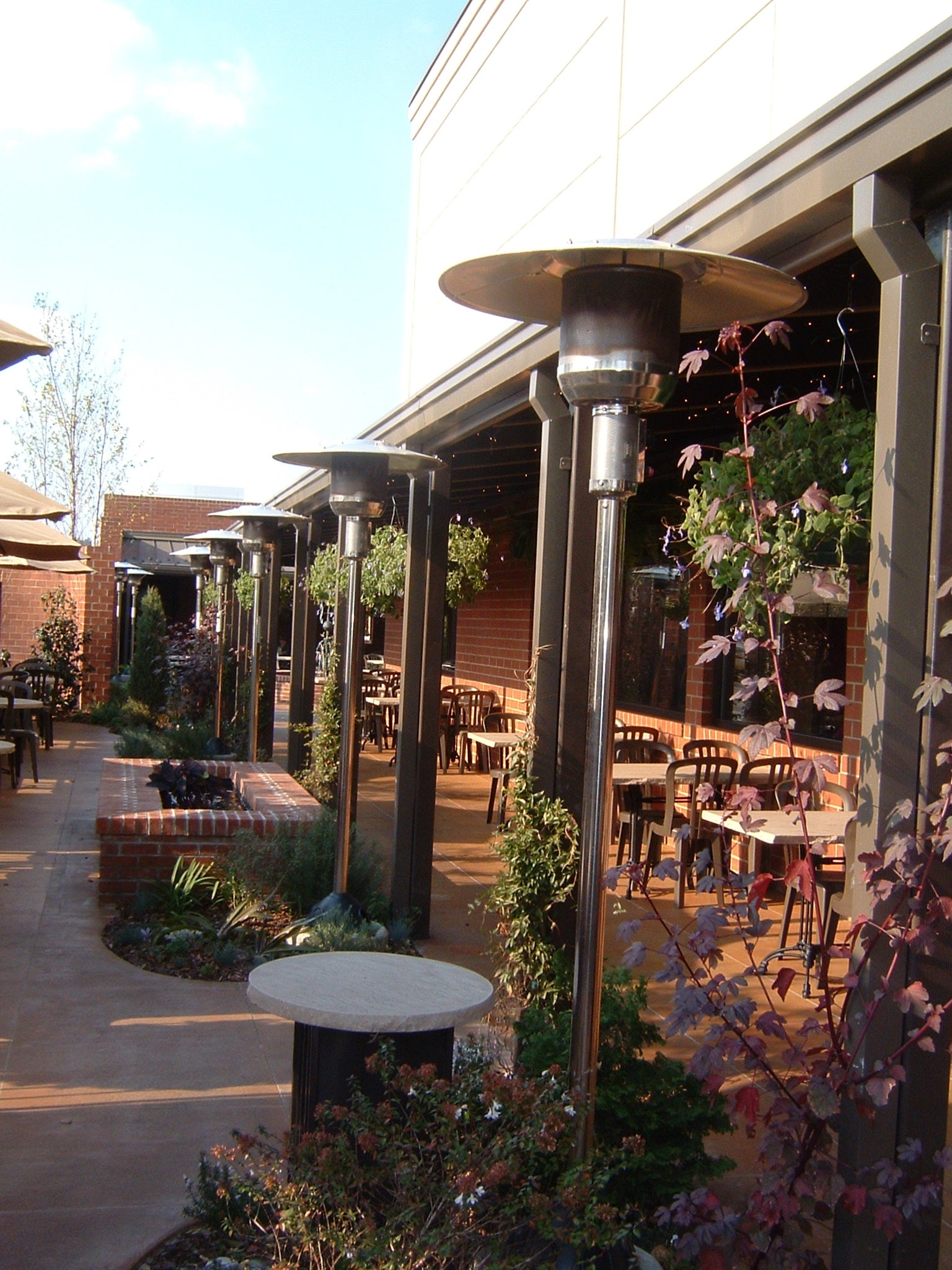 These 90” gas patio heaters are built on sturdy 4″ wheels and can easily be moved from one location to another and can be moved to secure storage. 32” wide at the base, these heaters are available in a portable unit [the base holds a 20/30lb propane tank] and a fixed unit, fueled from your natural gas line.