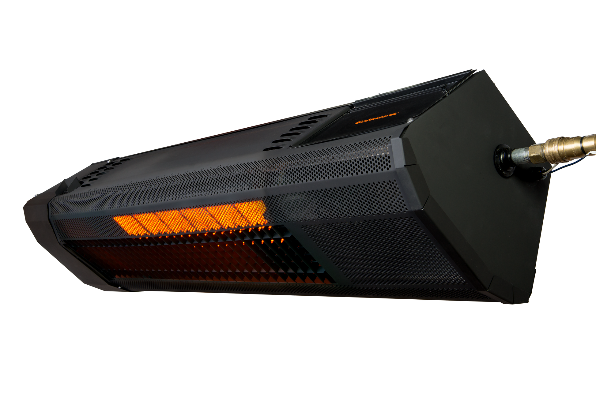 - As opposed to free-standing patio heaters, this heater's overhead mounted design frees up space in aisles to allow more room for seating and foot traffic.