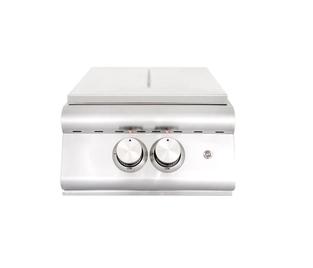 - Removable stainless steel cover shields burners from outdoor elements