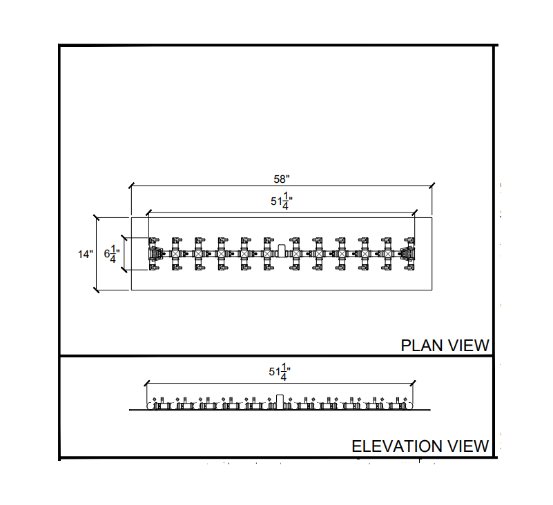 PLATE / PAN DIMENSION: 58" X 14" Rectangular